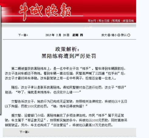 新華網(wǎng)重慶7月25日電(劉玲妙、姚慧、趙宇飛)隨著駕考熱不斷升溫,專門為“新手”服務(wù)的汽車陪駕市場也日益火爆。然而記者調(diào)查發(fā)現(xiàn),目前汽車陪駕市場亂象叢生,絕大多數(shù)是無資質(zhì)、無協(xié)議、無監(jiān)管的“黑陪駕”,由此帶來的安全隱患不容小視。
